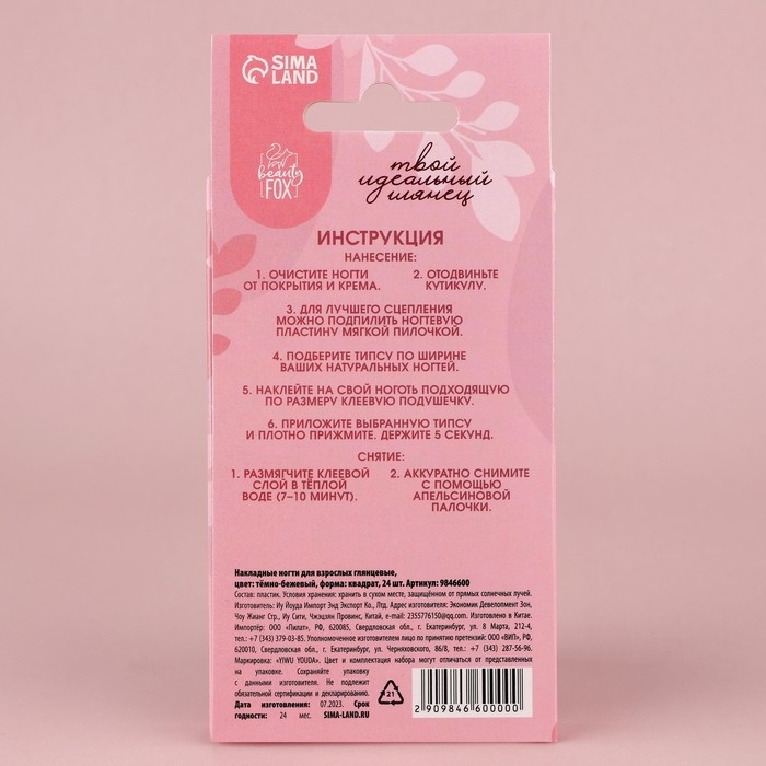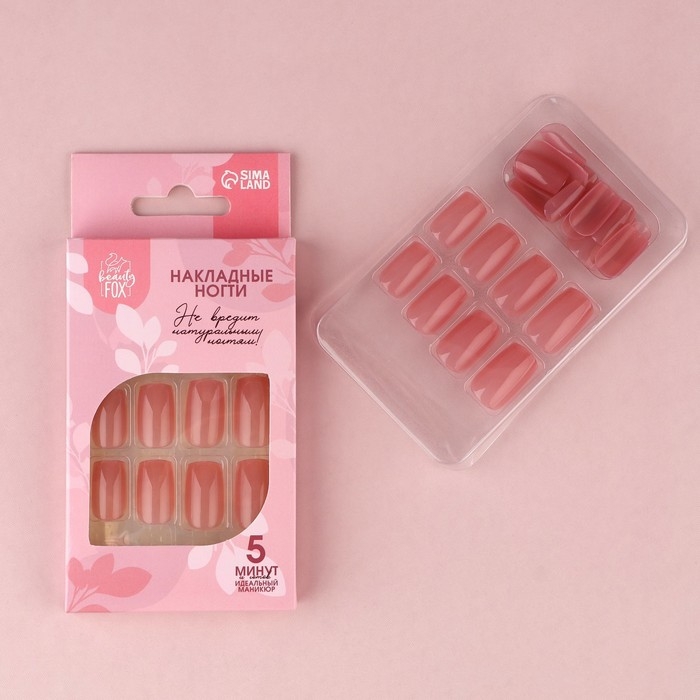Накладные ногти «Тёмный беж», 24 шт, клеевые пластины, форма квадрат, цвет глянцевый темно-бежевый