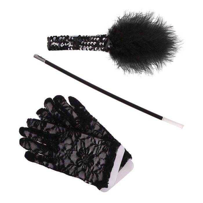 Карнавальный набор Gangster party поможет дополнить образ для разных событий, например, карнавального мероприятия, корпоратива, фотосессии и много другого! Предметы набора хорошо детализированы: повязка обшита пайетками и к ней прикреплены перья, на перчатках красивый кружевной узор, мундштук похож на настоящий.