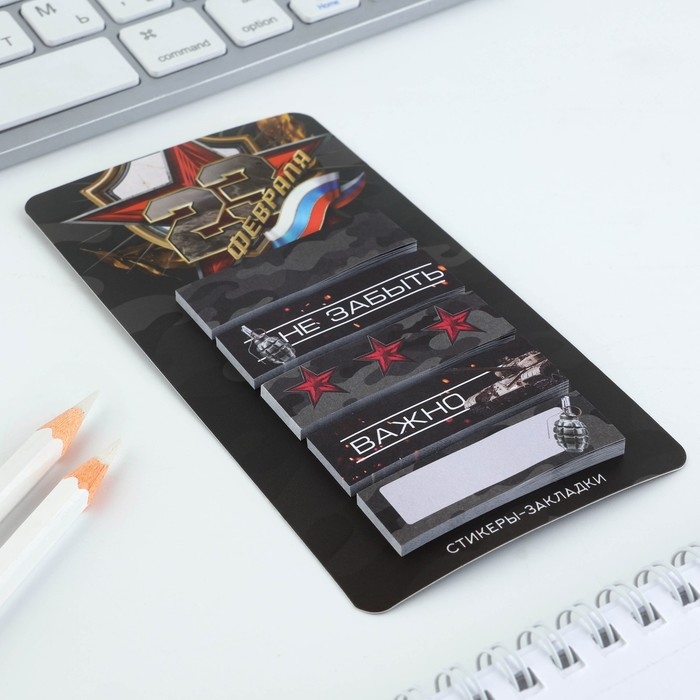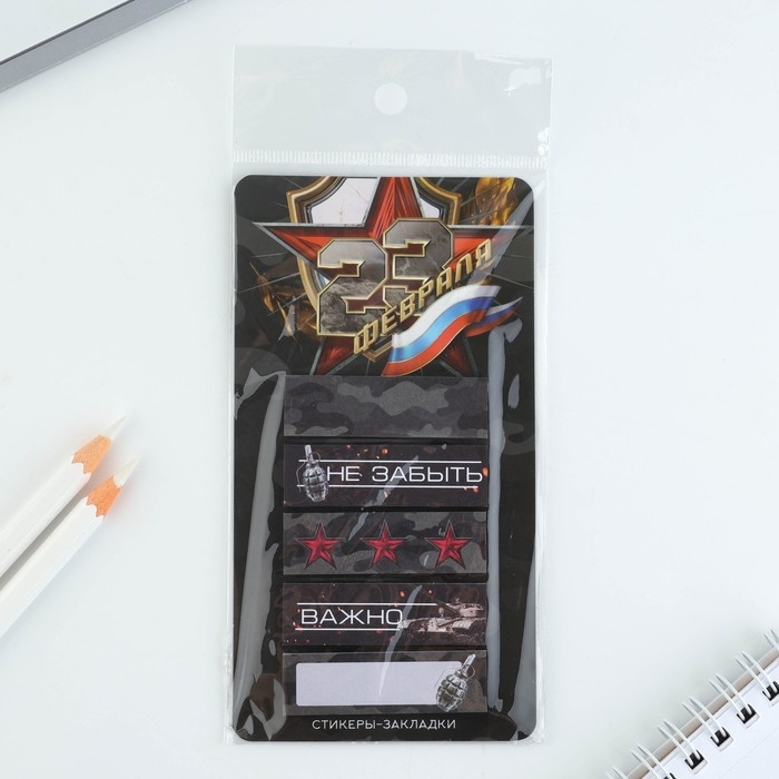 Стикеры-закладки, на подложке «23 Февраля», 5 шт, 30 л/шт