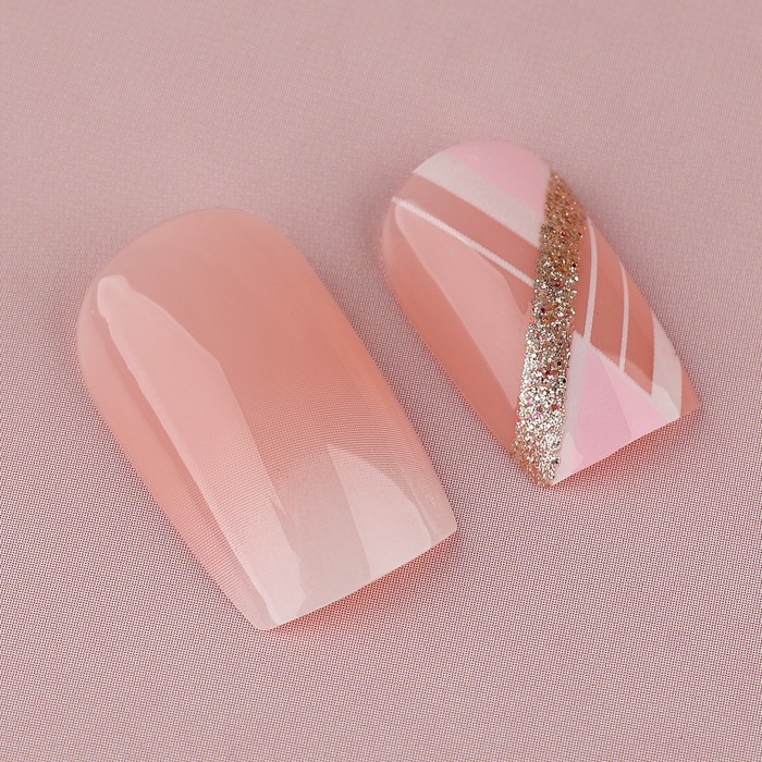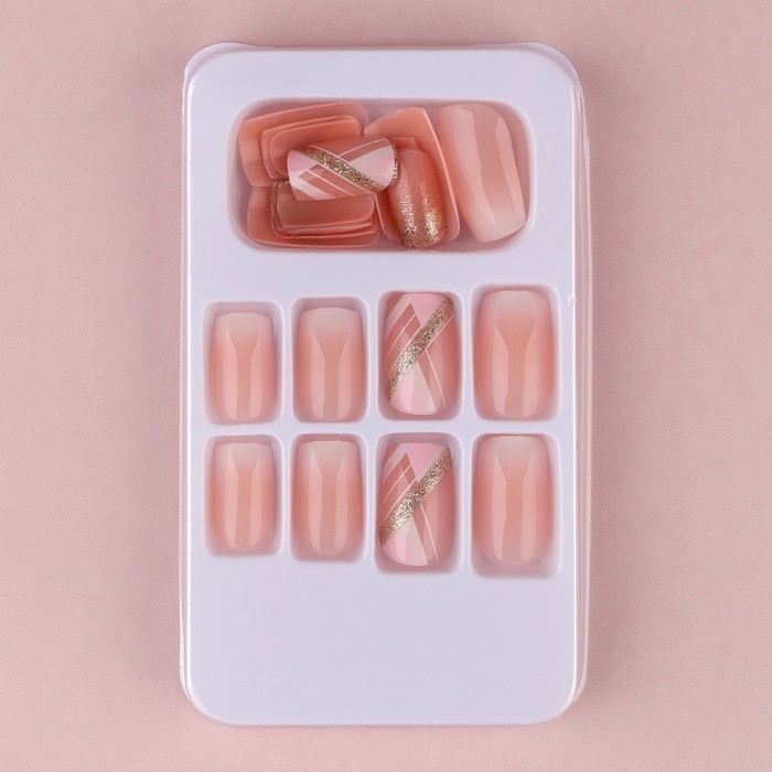 Накладные ногти «Геометрия», 24 шт, клеевые пластины, форма квадрат, цвет розовый/золостистый