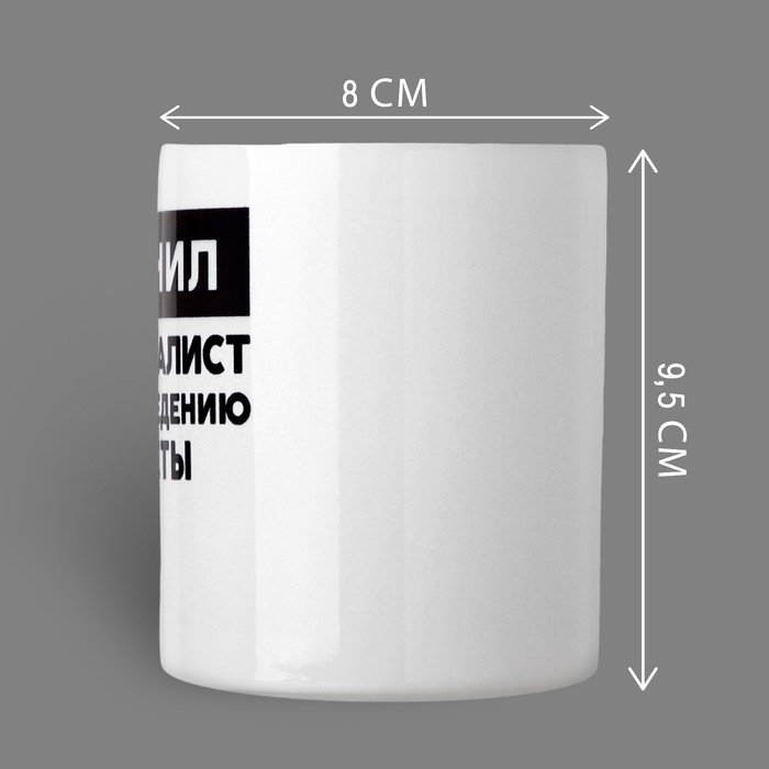Она выполнена из высококачественной керамики и украшена сублимационной печатью с надписью «Специалист по наведению суеты». Благодаря минималистичному дизайну, кружка выглядит элегантно и современно.