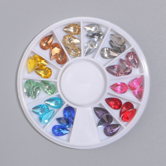Фигурки для дизайна ногтей «Капля», объёмные, 12 ячеек, разноцветные