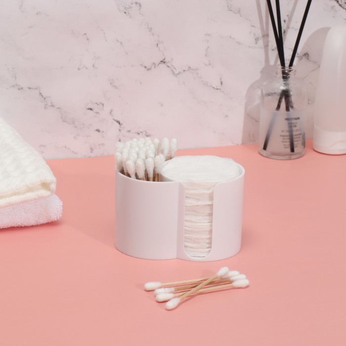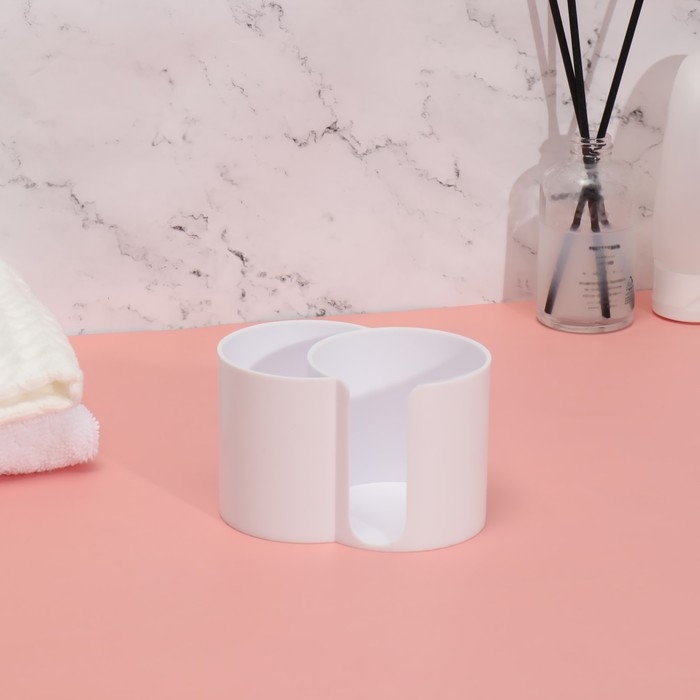Органайзер для хранения ватных палочек и дисков, 2 секции, 9,5 × 6 × 6 см, цвет белый