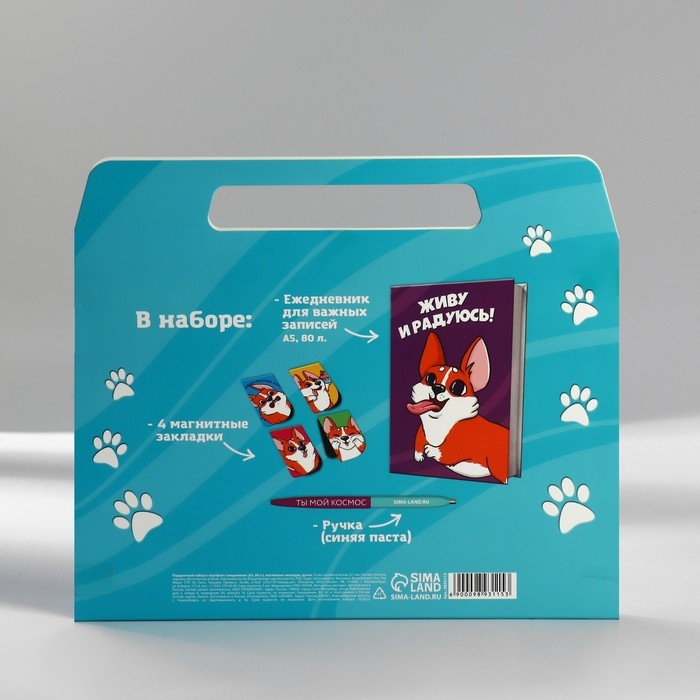 Подарочный набор в портфеле: ежедневник А5, магнитные закладки и ручка «Для тех, у кого лапки»