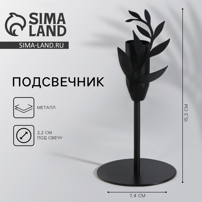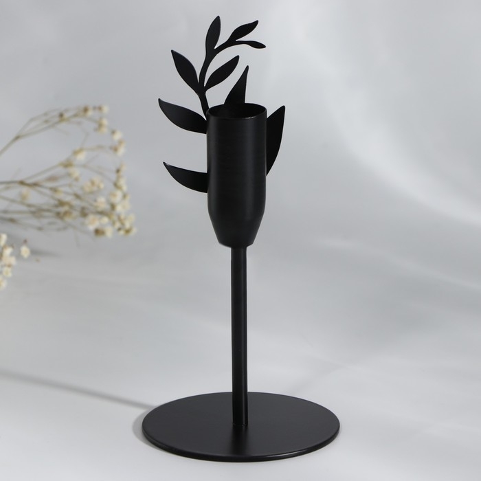 Подсвечник «Листики», черный, 7,4 х 15,3 см