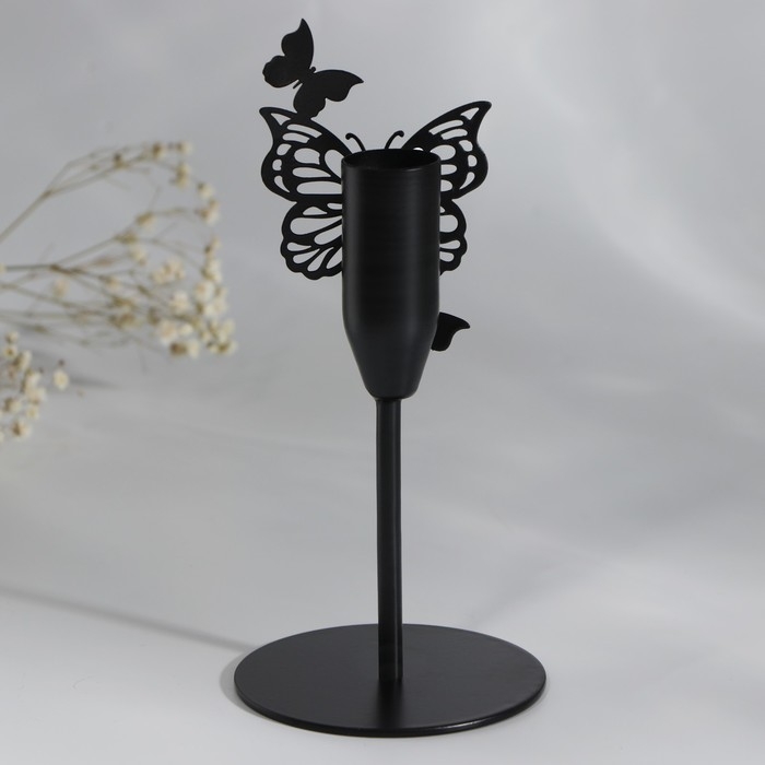 Подсвечник «Бабочки», черный, 7,4 х 15,3 см