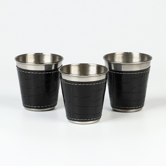 Набор стопок из 3 штук по 70 мл из пищевой нержавеющей стали в компактном чехле. Легкие и компактные, удобно брать с собой на отдых, рыбалку, охоту, природу или в путешествия.