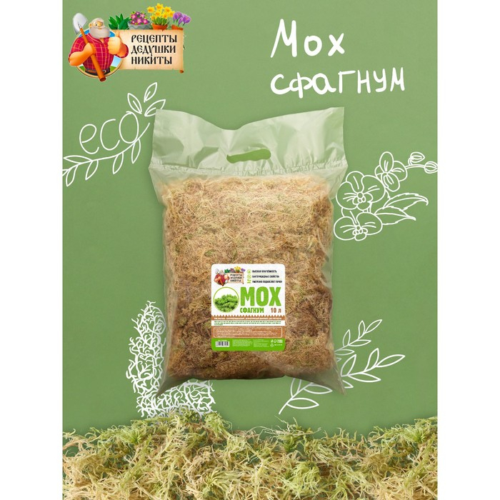 Мох сфагнум "Рецепты Дедушки Никиты" 10 л.