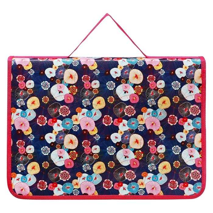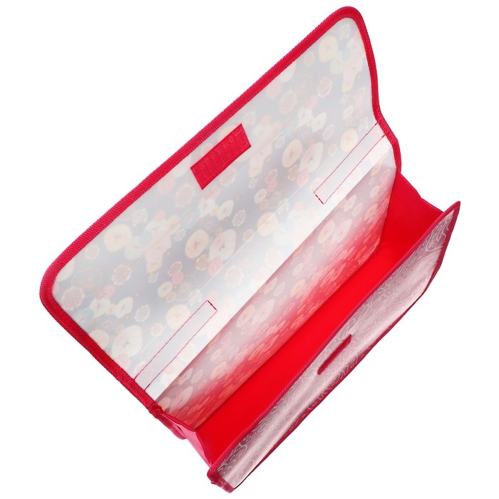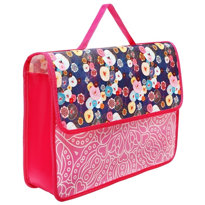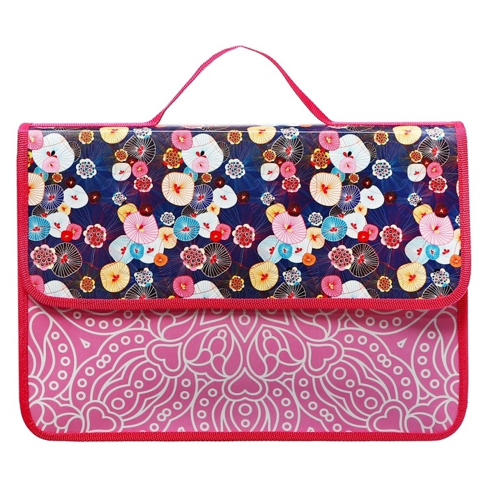 Папка-портфель А4, 330 х 240 х 90 мм, пластиковая, на липучке, ПМ-А4-23 "Цветочная паутина", розовая