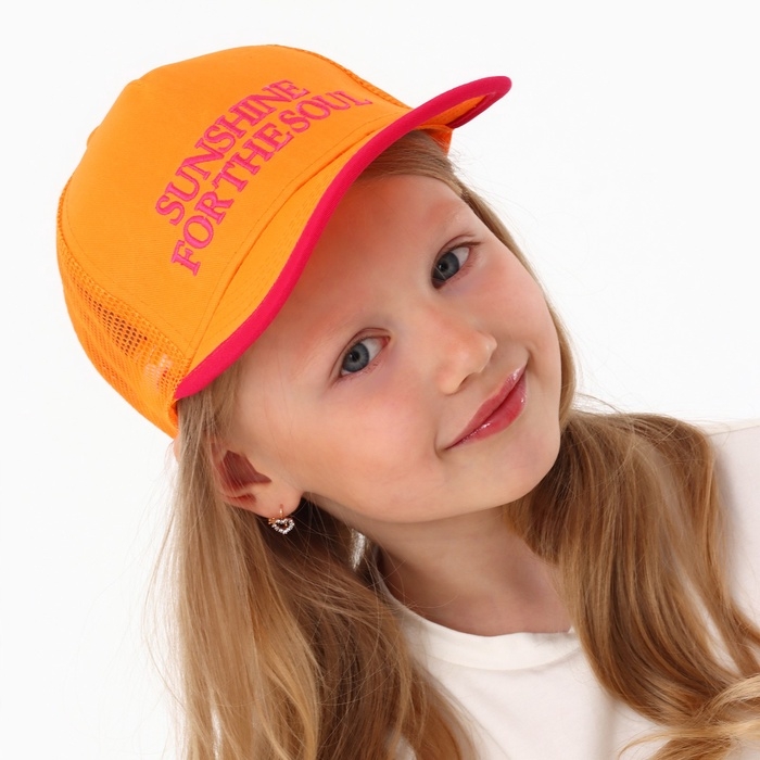 Кепка детская для девочки с сеткой Sunshine, цвет оранжевый, р-р 52-54, 5-7 лет