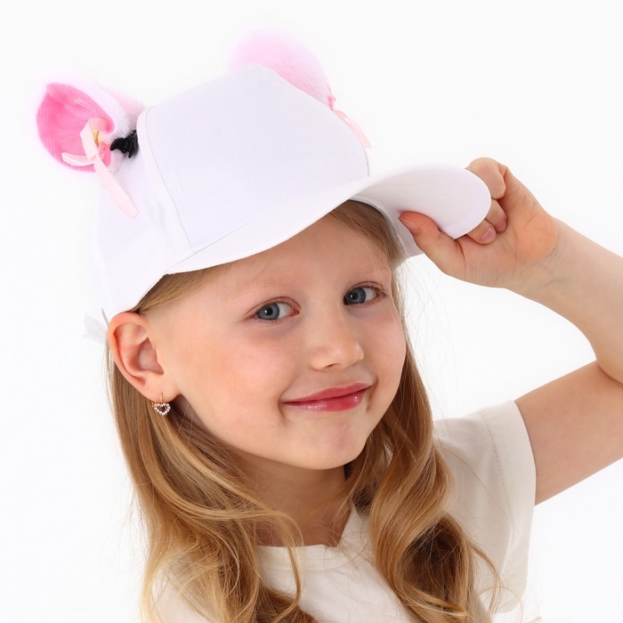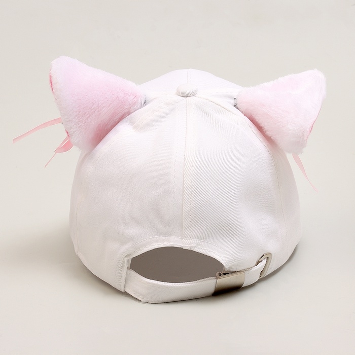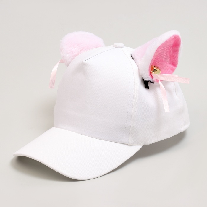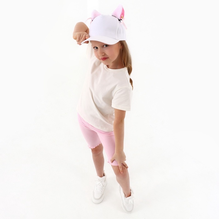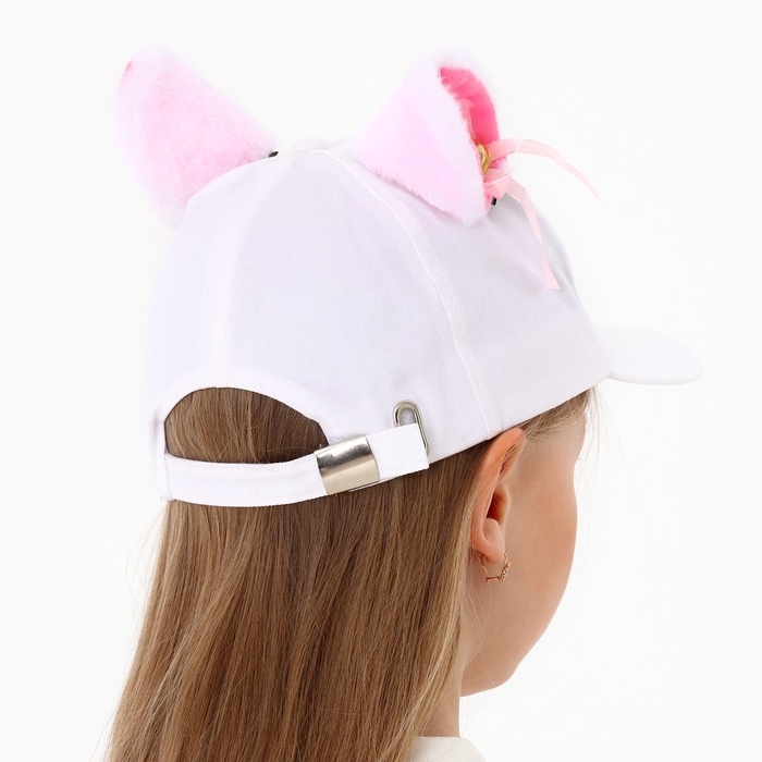 Кепка детская для девочки "Кошечка" с ушками, цвет белый, р-р 52-54, 5-7 лет