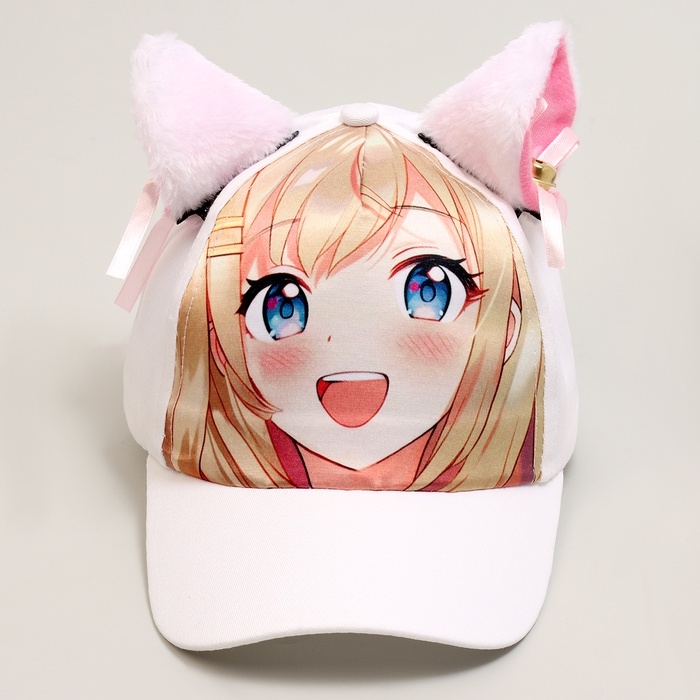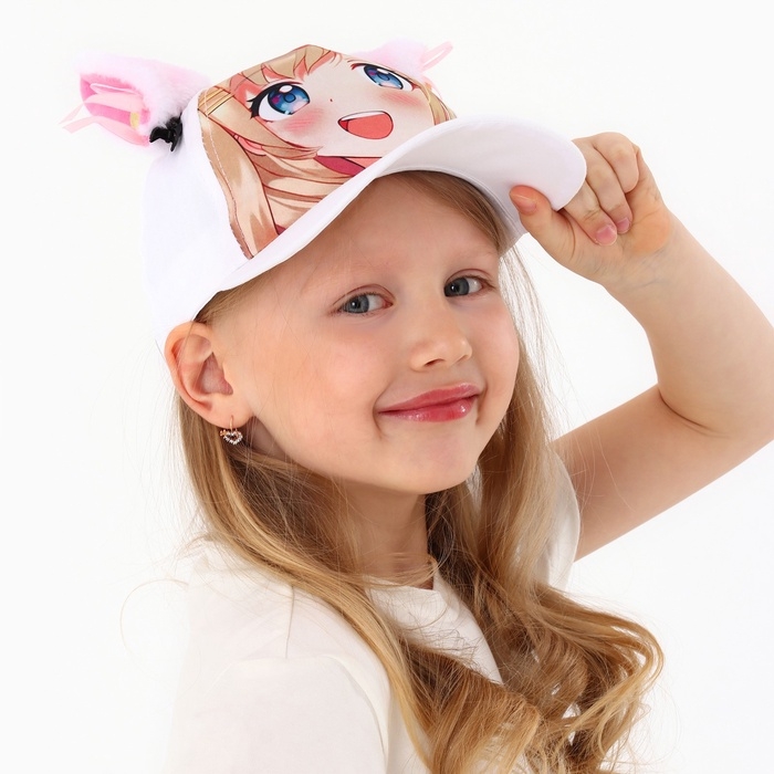 Кепка детская для девочки "Котик", аниме, с ушками, р-р 52-54, 5-7 лет