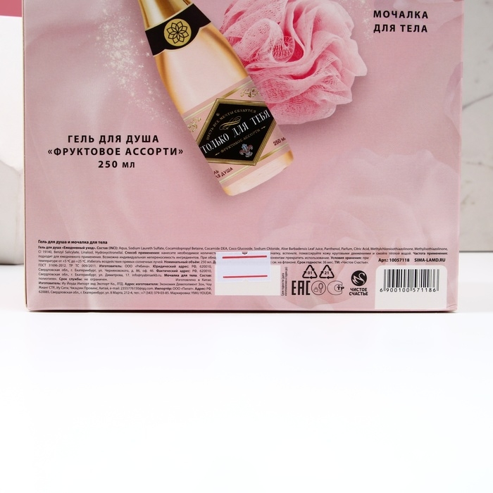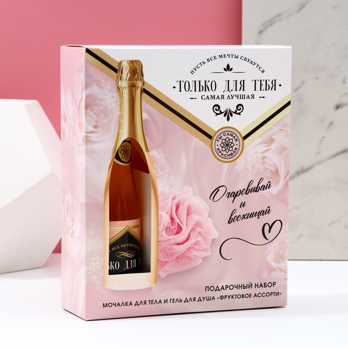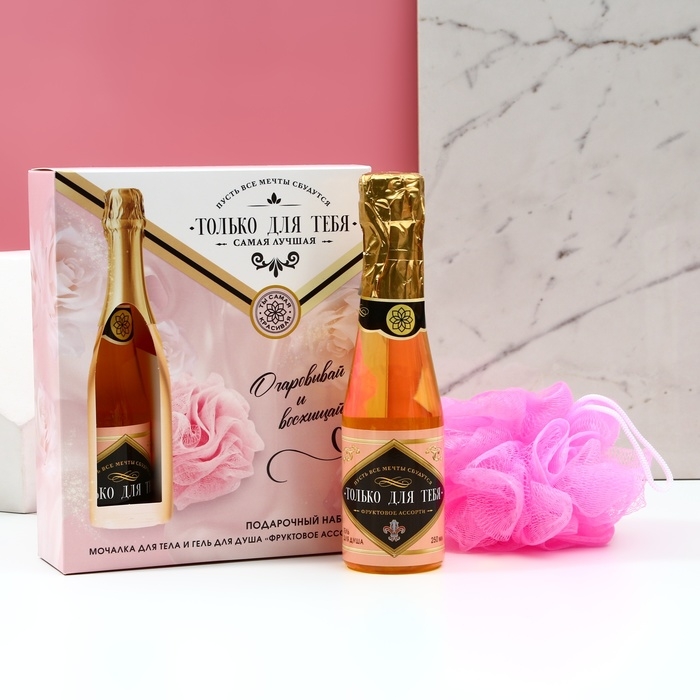 Новогодний подарочный набор косметики «Только для тебя», гель для душа во флаконе шампанское 250 мл и мочалка для тела, Новый Год