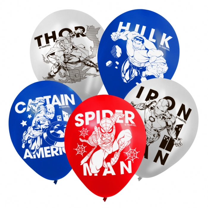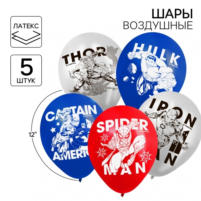 Шар воздушный "Супер-герой", 12 дюйм, латексный, 5 штук, Мстители