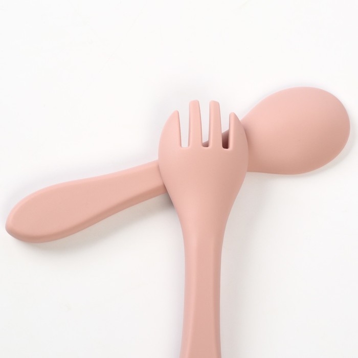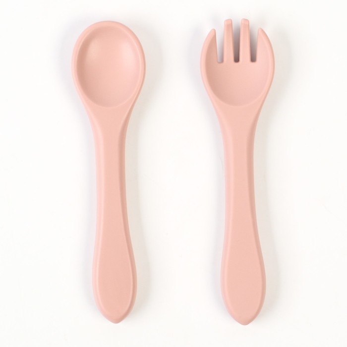 Набор детский столовых приборов, вилка и ложка M&B (силикон), пыльная роза
