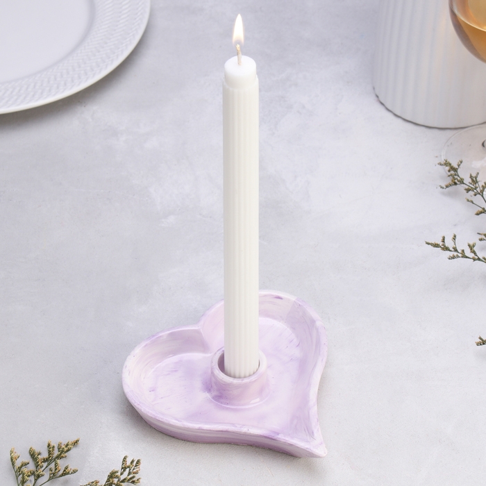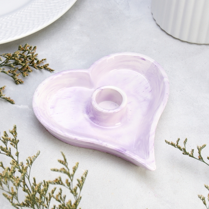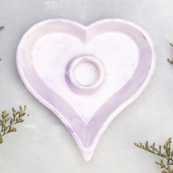 Подсвечник "Сердце" из гипса,14х2,5см,мрамор с фиолетовыми полосками