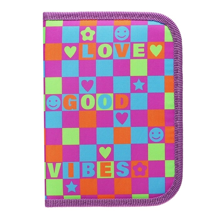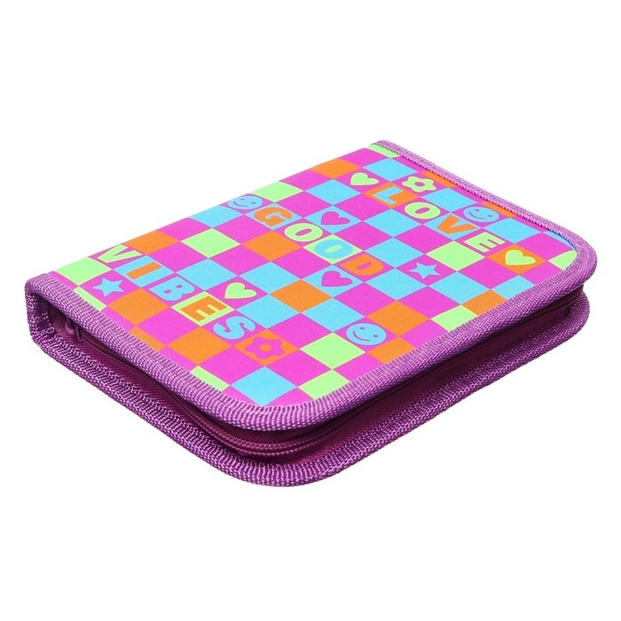 Пенал 1 секция, 130 х 190 Х 30 мм, текстильный, ПКТ 04-20 "Цветная шахматка" 71995