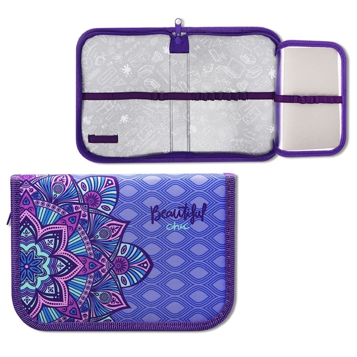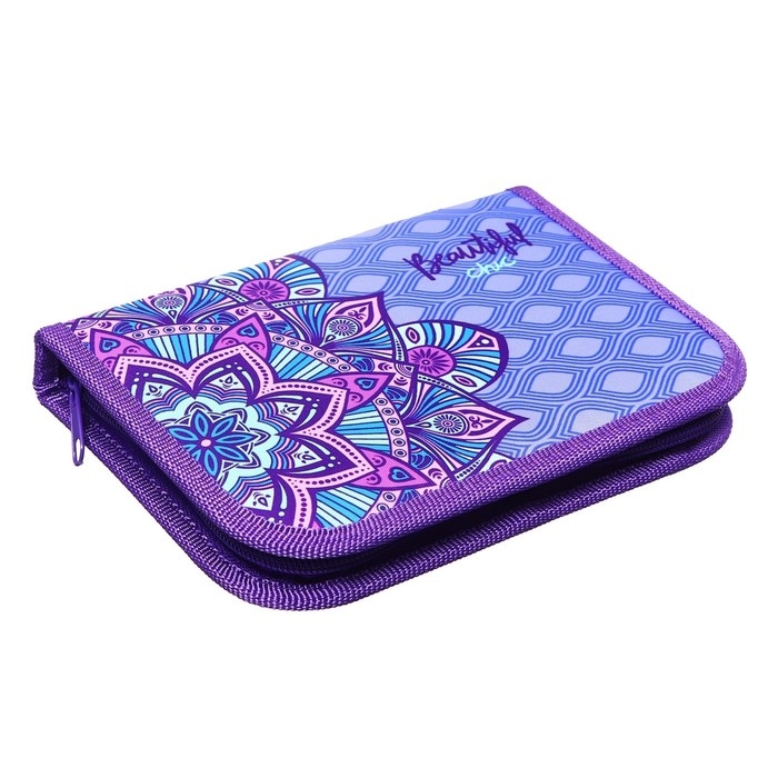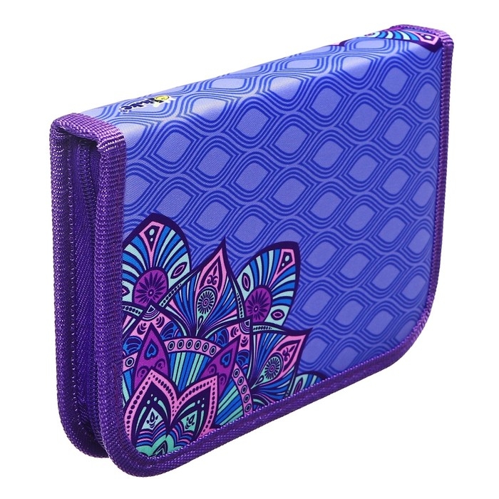 Пенал 1 секция 130 х 190 х 27 мм, откидная планка, текстильный, ПКТ 07-20 "Индийский цветок" 72215