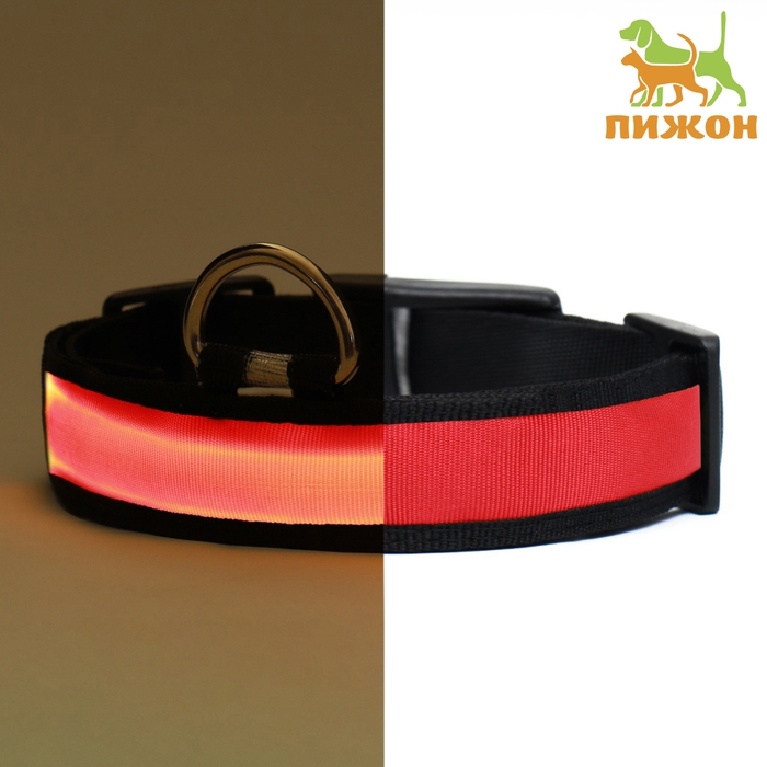 Ошейник с подсветкой размер XL, ОШ 52-60 х 2,5 см, 3 режима свечения красный