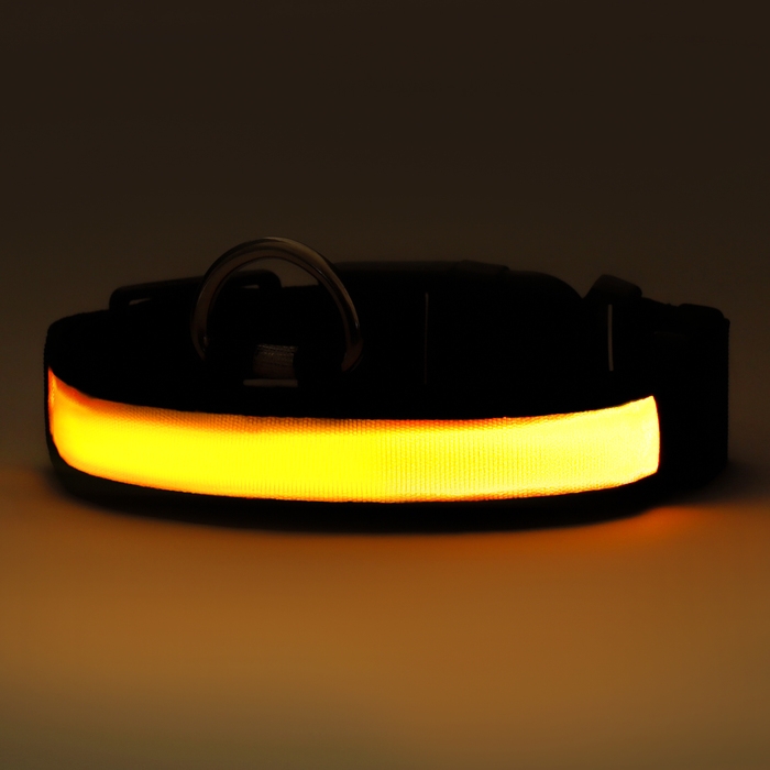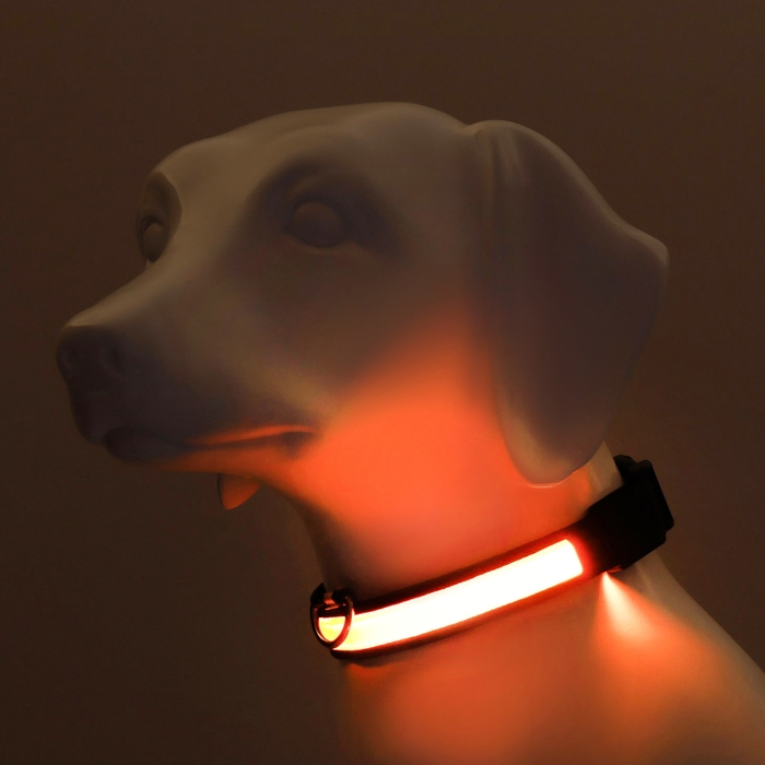 Ошейник с подсветкой размер XL, ОШ 52-60 х 2,5 см, 3 режима свечения оранжевый