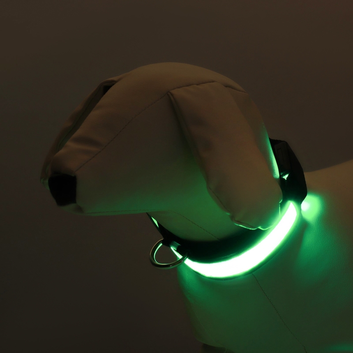 Ошейник с подсветкой размер L, ОШ 45-52 х 2,5 см, 3 режима свечения зелёный
