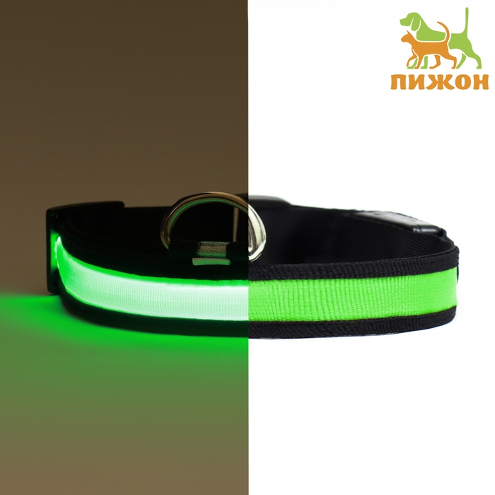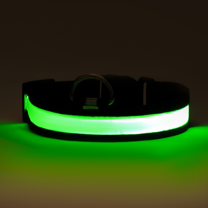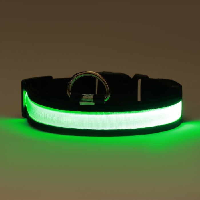 Ошейник с подсветкой размер L, ОШ 45-52 х 2,5 см, 3 режима свечения зелёный