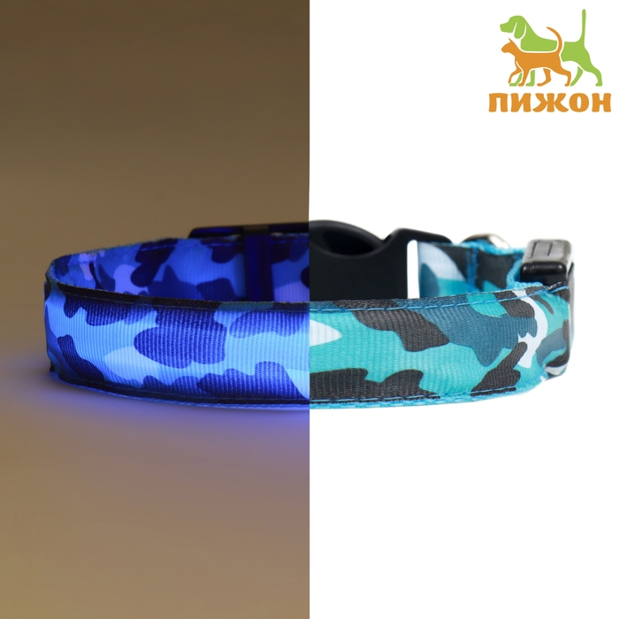 Ошейник с подсветкой Милитари 3 режима свечения размер L, ОШ 48-60 х 2,5 см синий