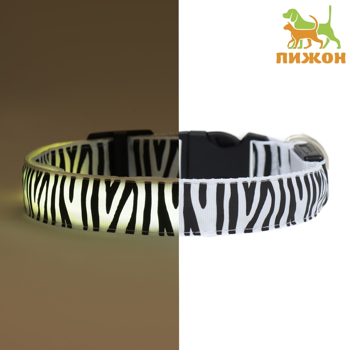 Ошейник с подсветкой Зебра 3 режима свечения размер XL, ОШ 60-70 х 2,5 см белый