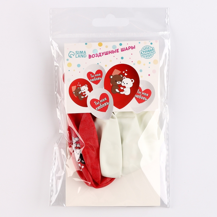 Воздушный шар латексный 12" «Ты моя любовь», мишки, 5 шт.