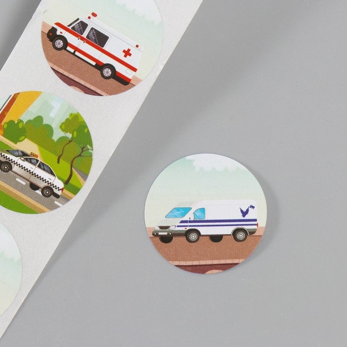 Наклейка бумага "Служебный транспорт" d=2,5 см 252 шт в рулоне