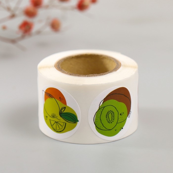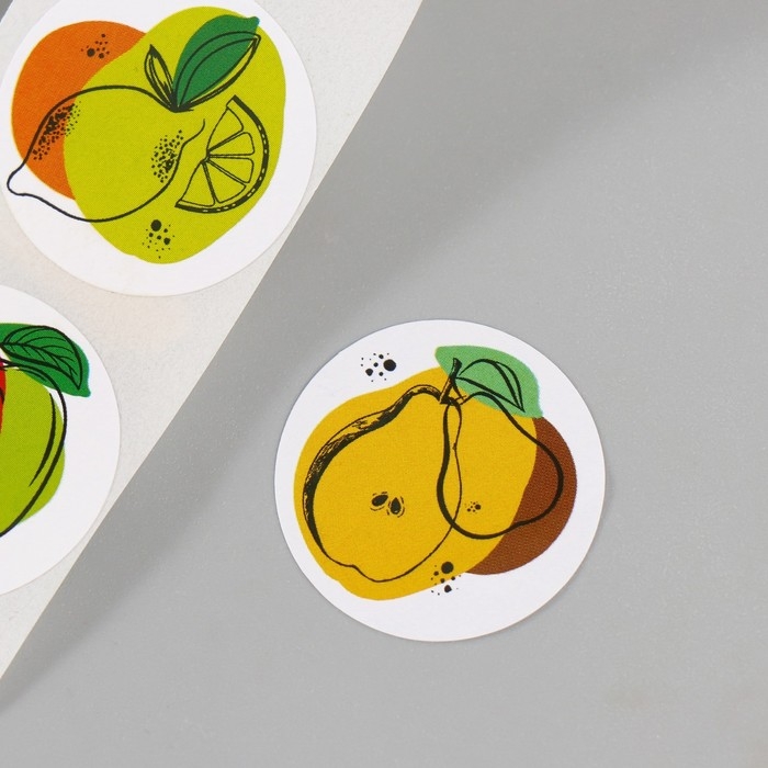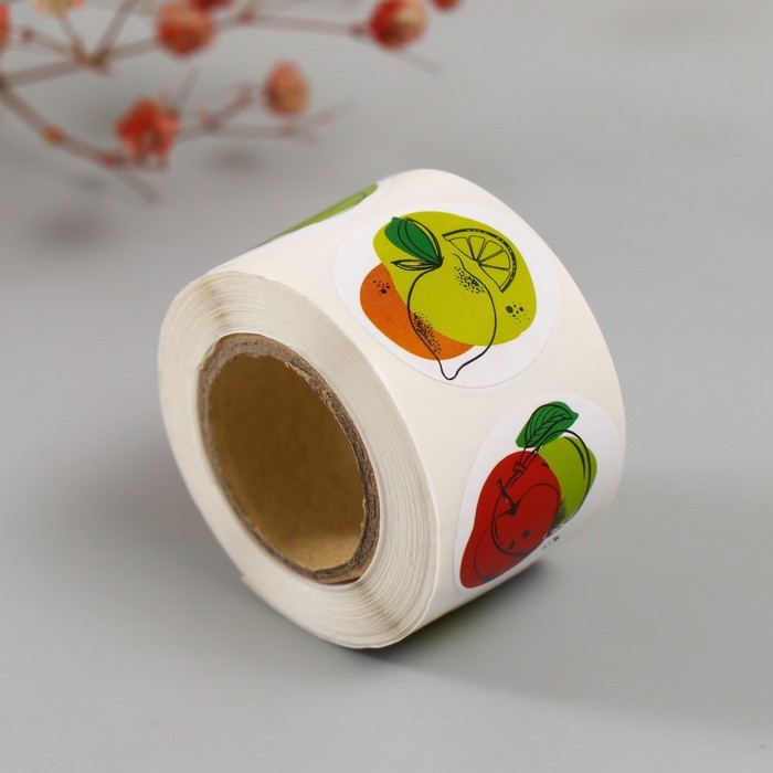 Наклейка бумага "Фрукты" d=2,5 см 252 шт в рулоне