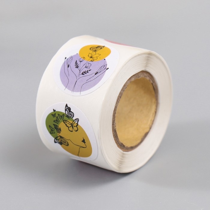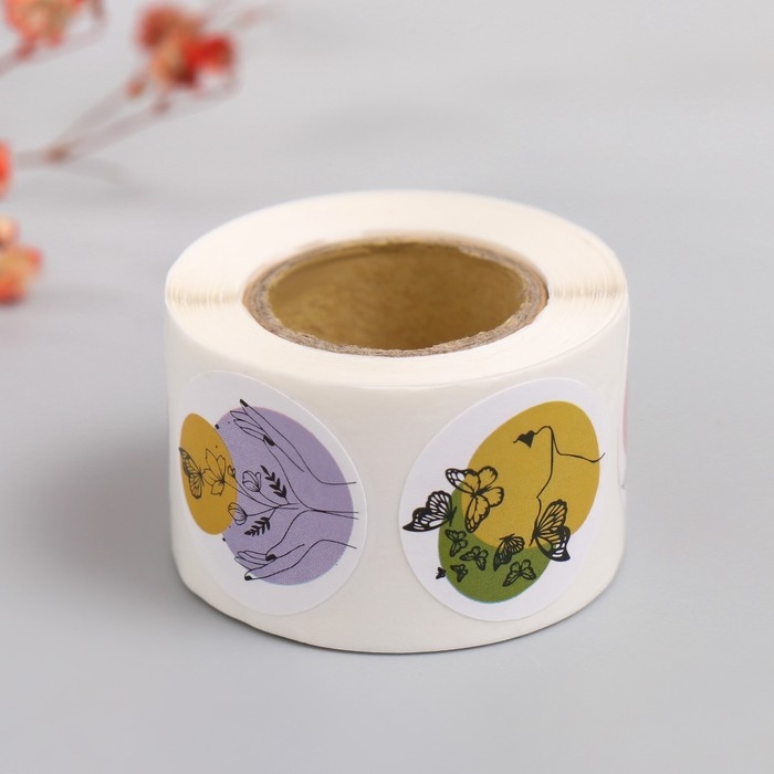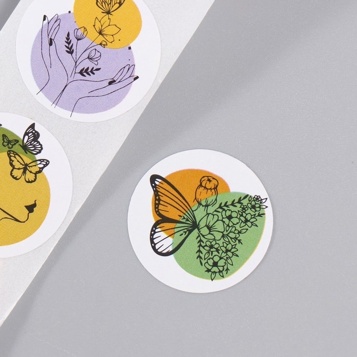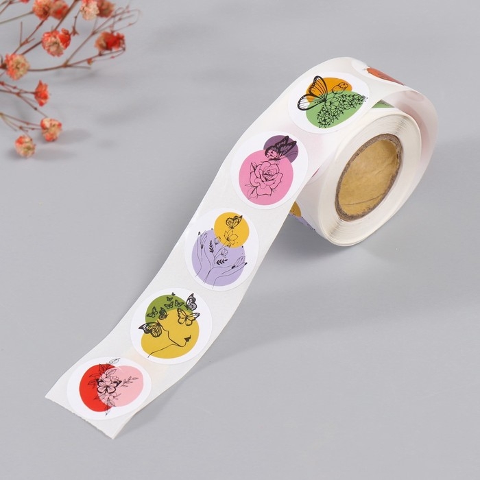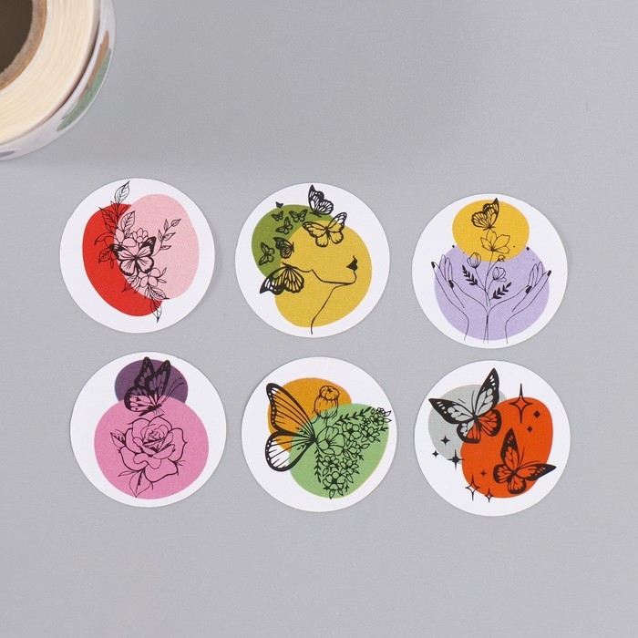 Наклейка бумага "Бабочки и цветы. Абстракция" d=2,5 см 252 шт в рулоне