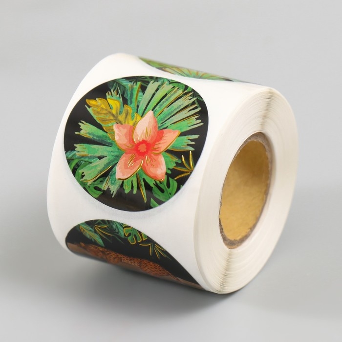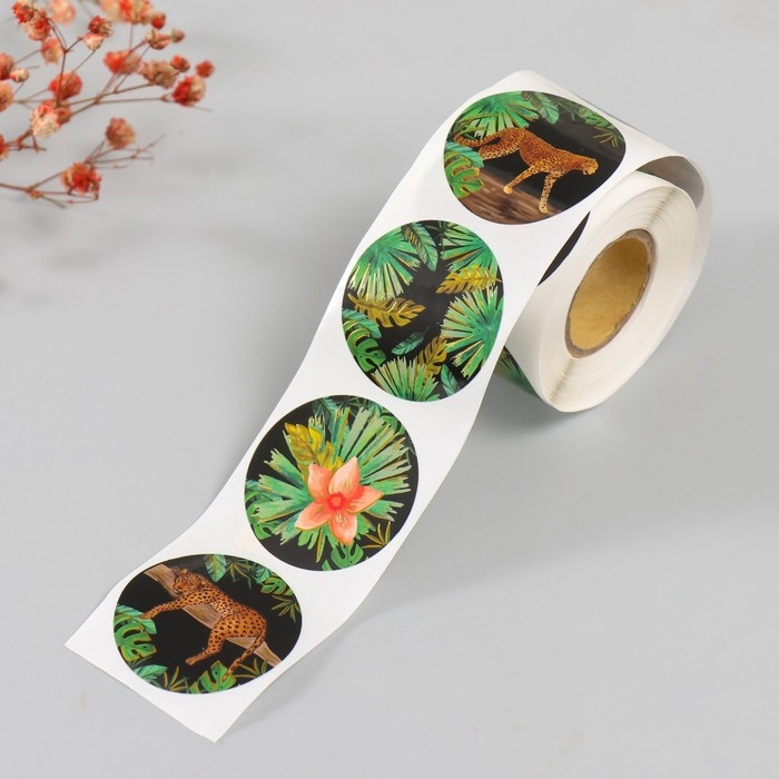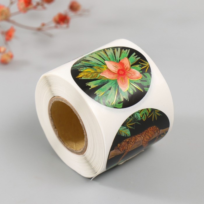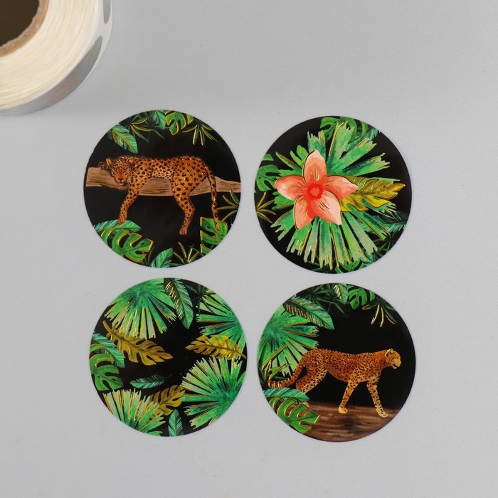 Наклейка бумага "Гепарды" тиснение золото d=3,8 см 252 шт в рулоне