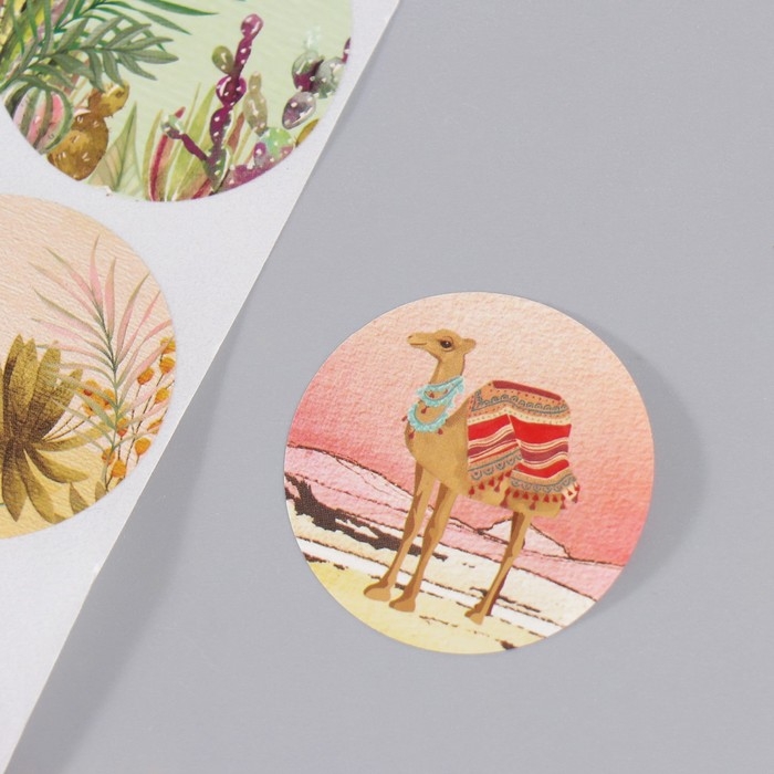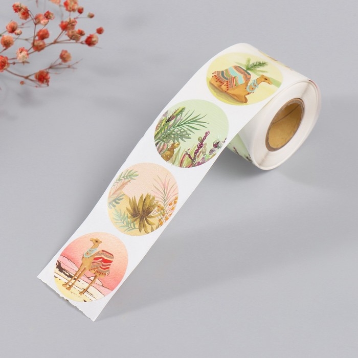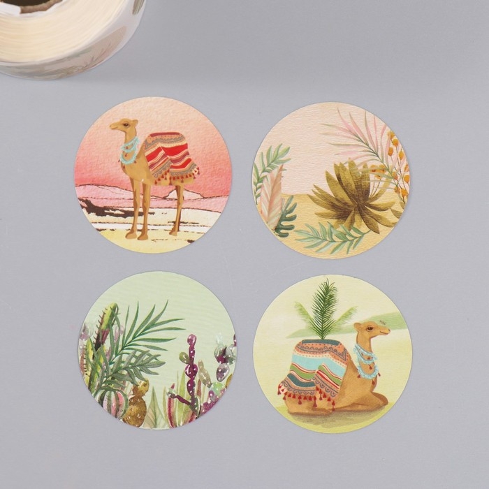 Наклейка бумага "Верблюды" d=3,8 см 252 шт в рулоне