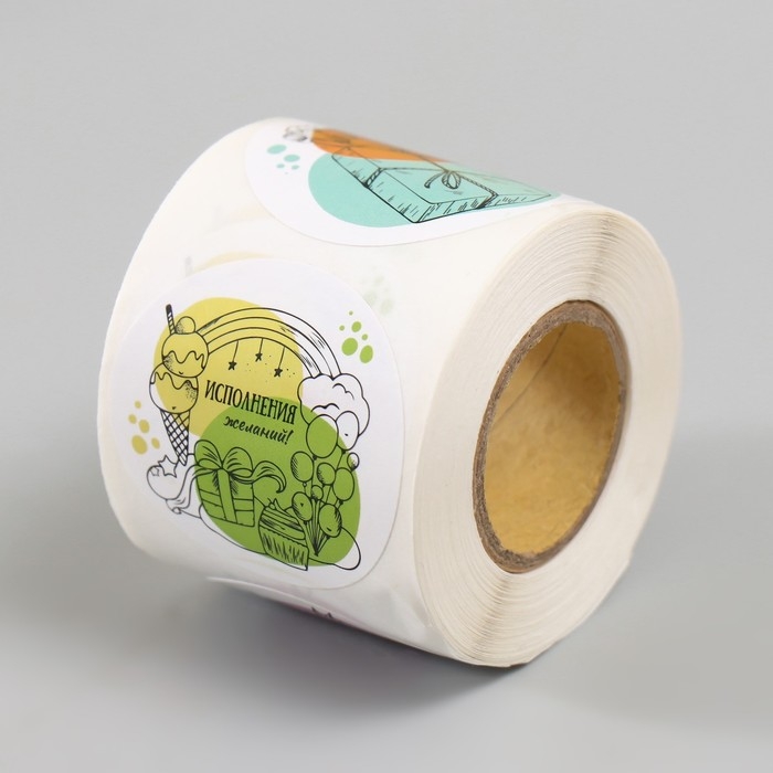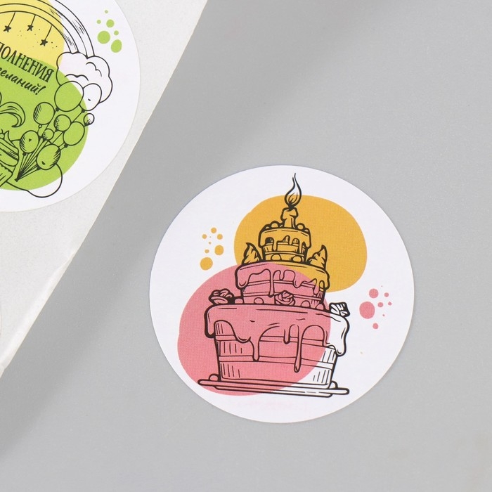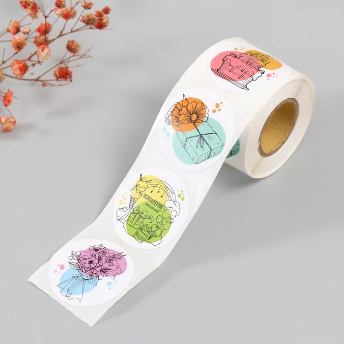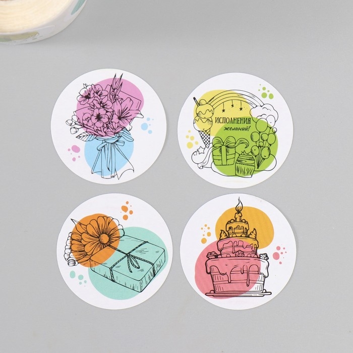 Наклейка бумага "День рождения" d=3,8 см 252 шт в рулоне