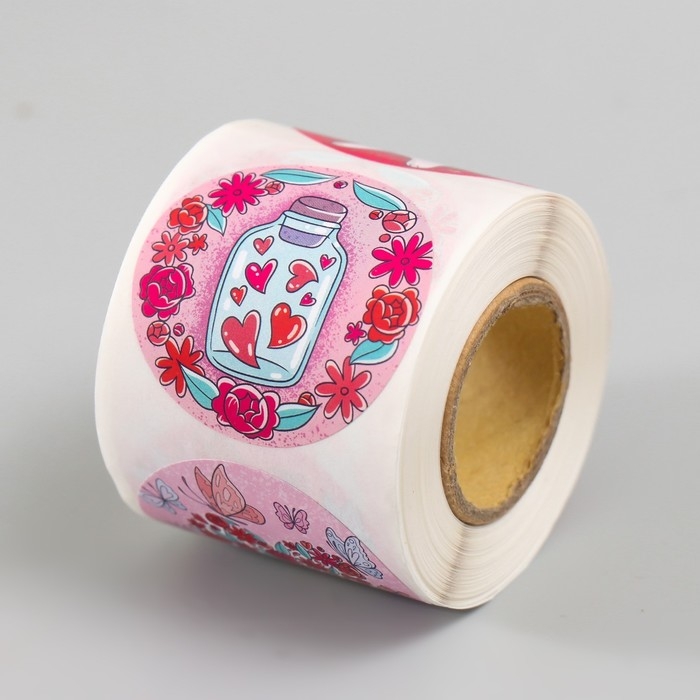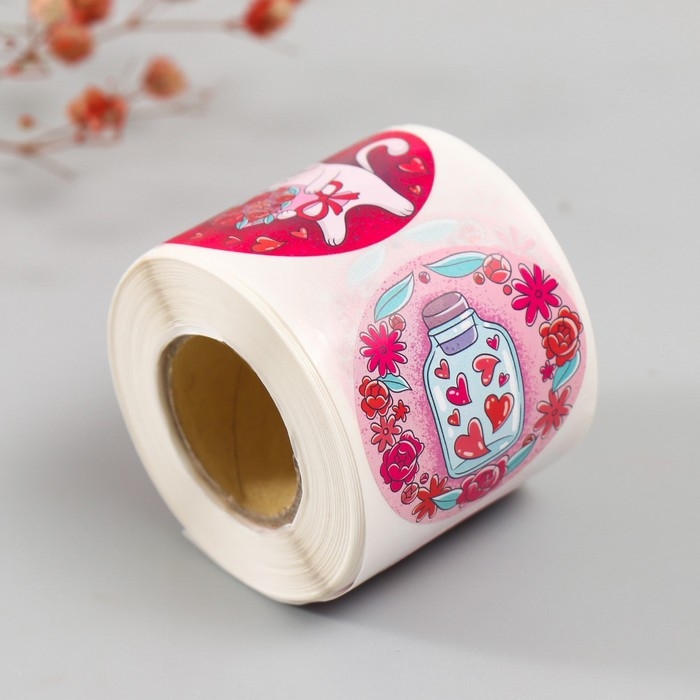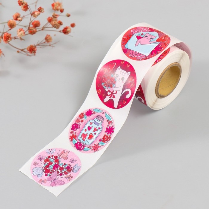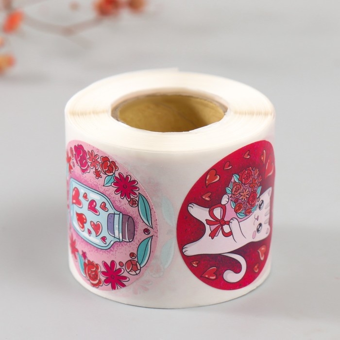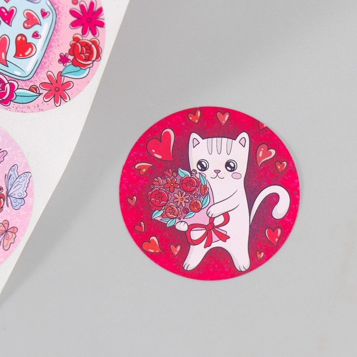 Наклейка бумага "Котики и любовь" d=3,8 см 252 шт в рулоне