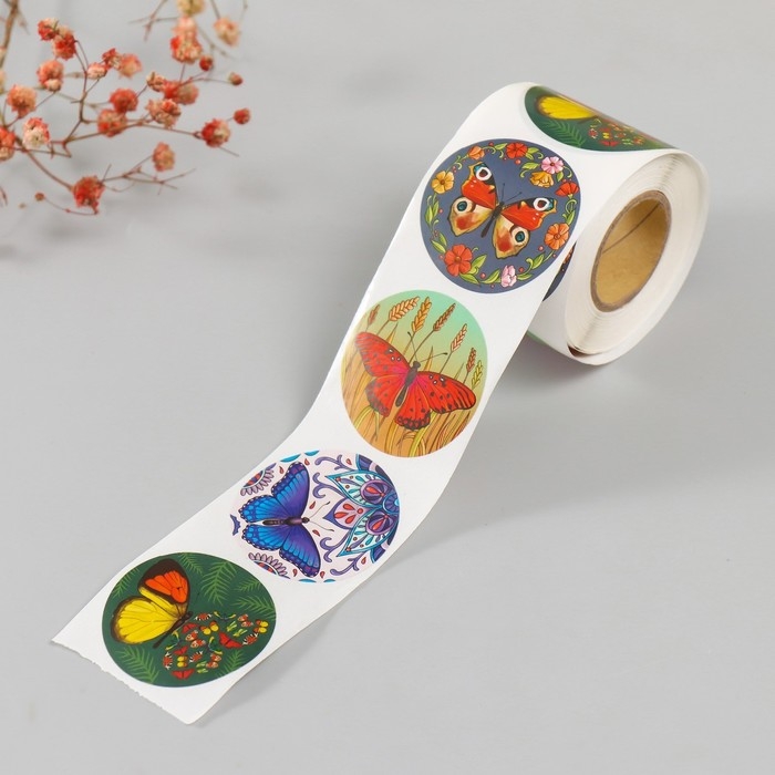 Наклейка бумага "Бабочки" d=3,8 см 252 шт в рулоне