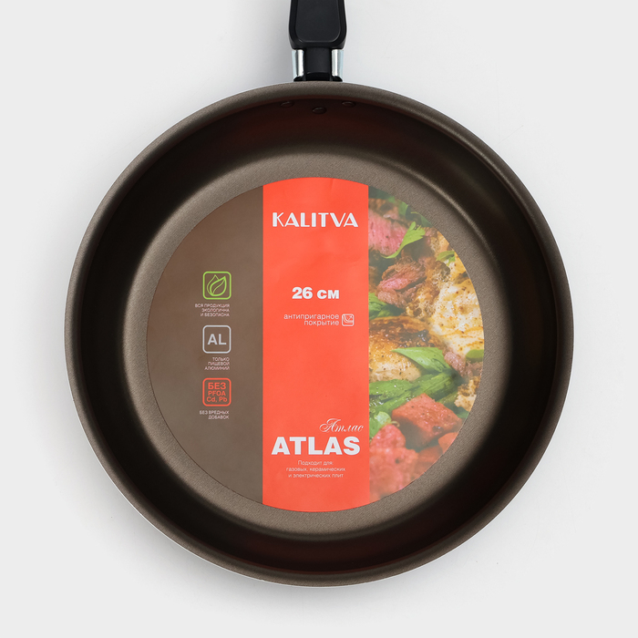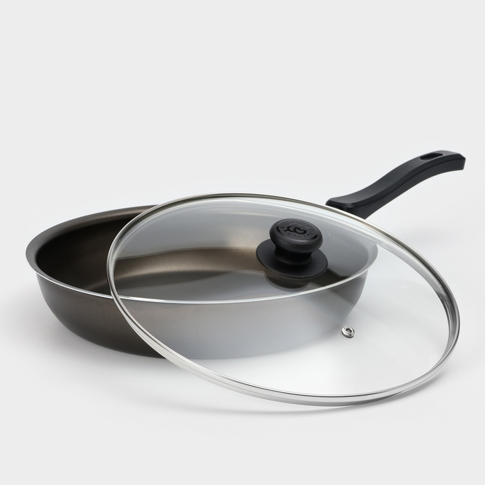 Сковорода «Классика атлас», d=26 см, пластиковая ручка, стеклянная крышка, антипригарное покрытие, цвет чёрный