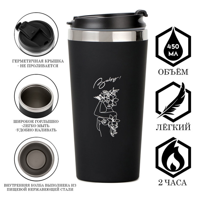Наполните уютом ваши прогулки или поездки в машине. Термокружка станет полезным и универсальным подарком для мужа, папы, брата и друга на 23 февраля, Новый год и на любом другой праздник.