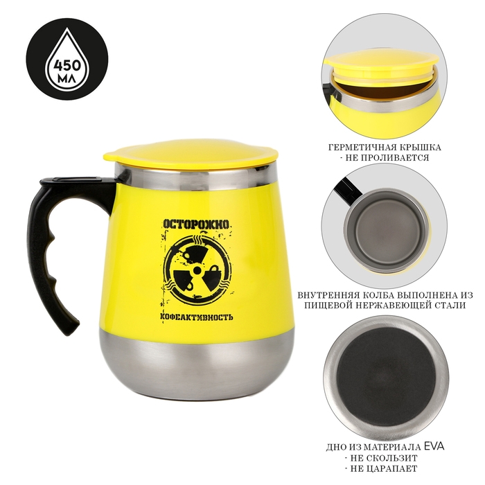 Термокружка, 450 мл, Алтай "Осторожно кофеактивность", сохраняет тепло до 2 ч