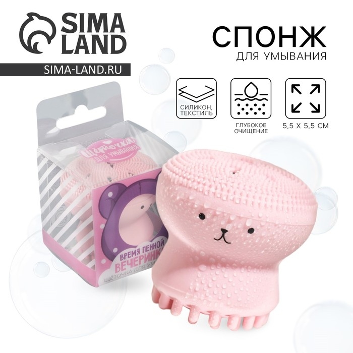 Массажер для лица, спонж для умывания «Время пенной вечеринки», 5,5 х 5,5 см
