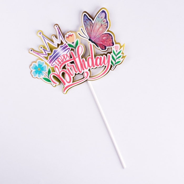 Топпер "Happy Birthday. Бабочка", розовый, Дарим красиво
