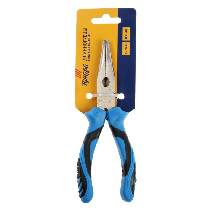 Длинногубцы ТУНДРА, сталь 45, никелированные, 2К рукоятки, 160 мм