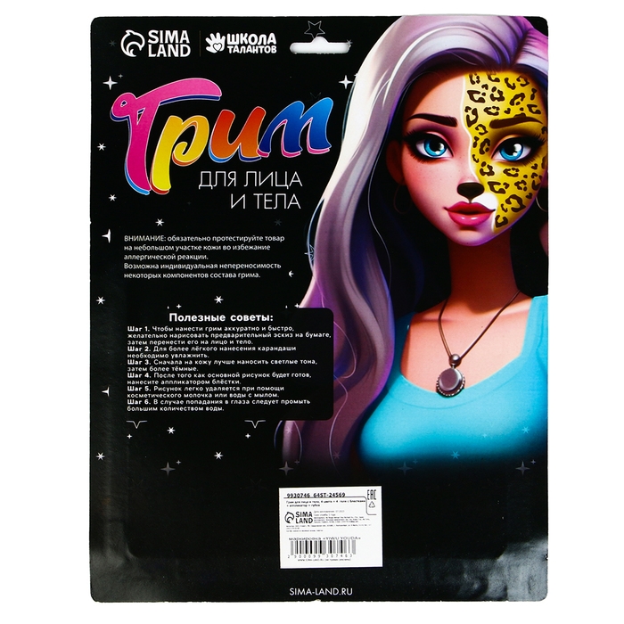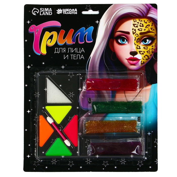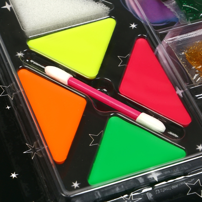 Грим для лица и тела, 4 светятся в темноте, 3 геля с блестками, 1 красный + аппликатор + спонж