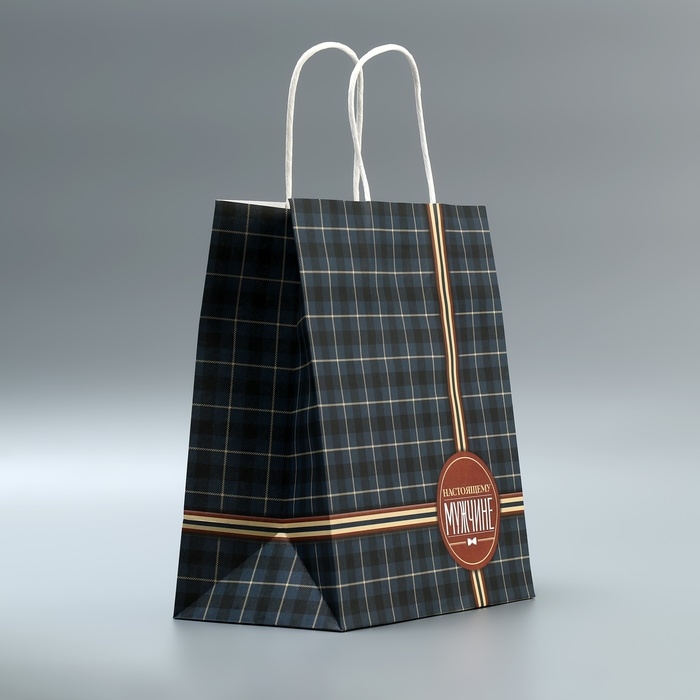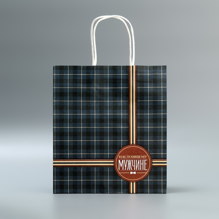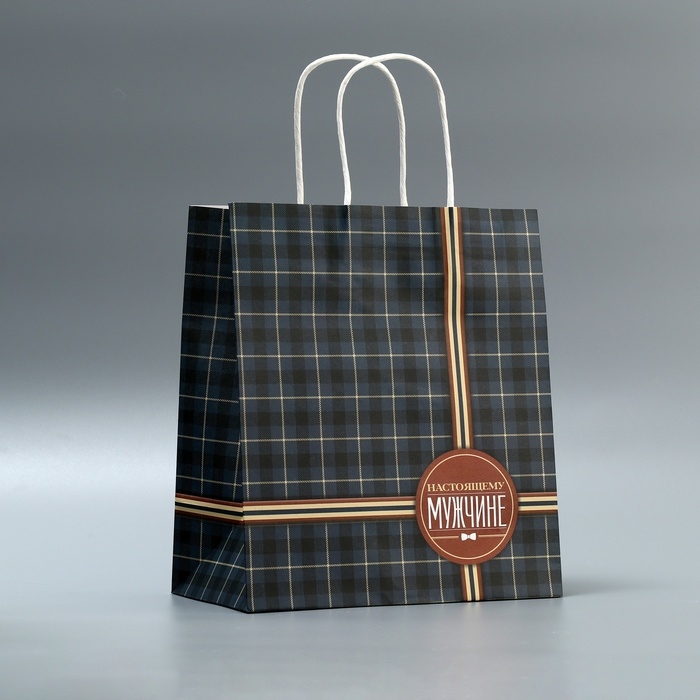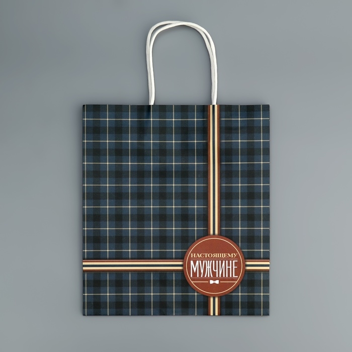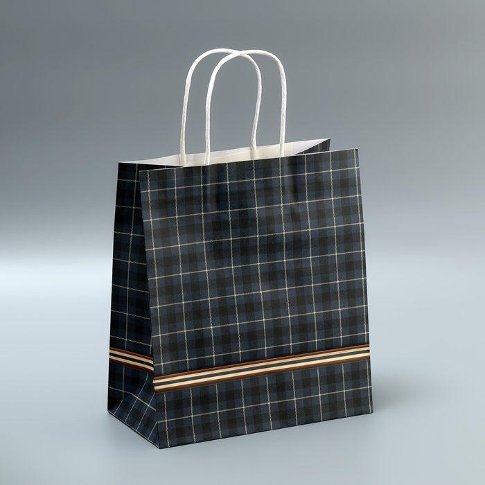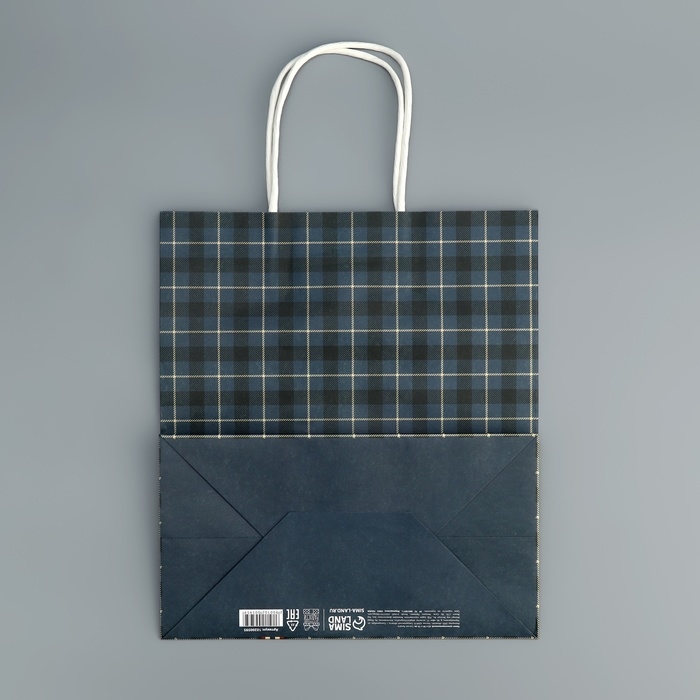 Пакет подарочный крафтовый, упаковка, «Клетка», 22 х 25 х 12 см
