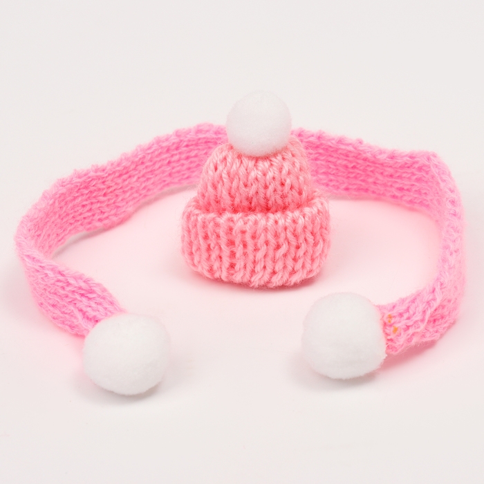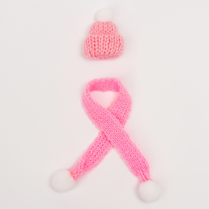Вязаные шапка и шарфик для игрушек, цвет розовый