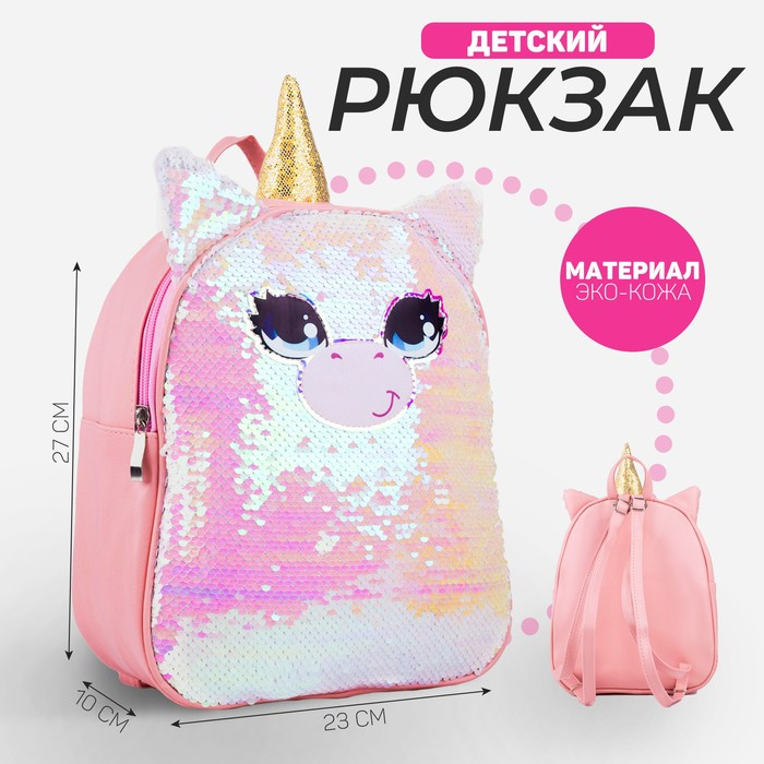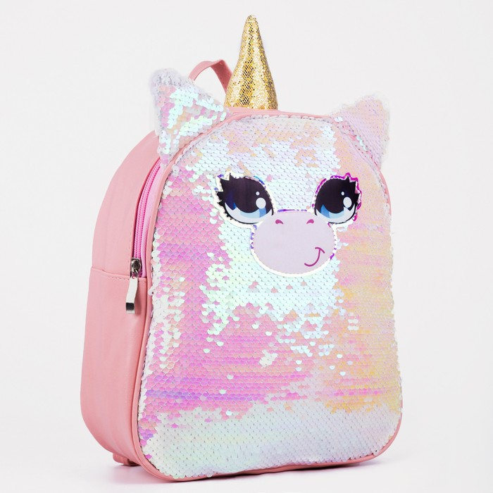 Рюкзак детский для девочки с пайетками «Единорог» , отдел на молнии, цвет розовый