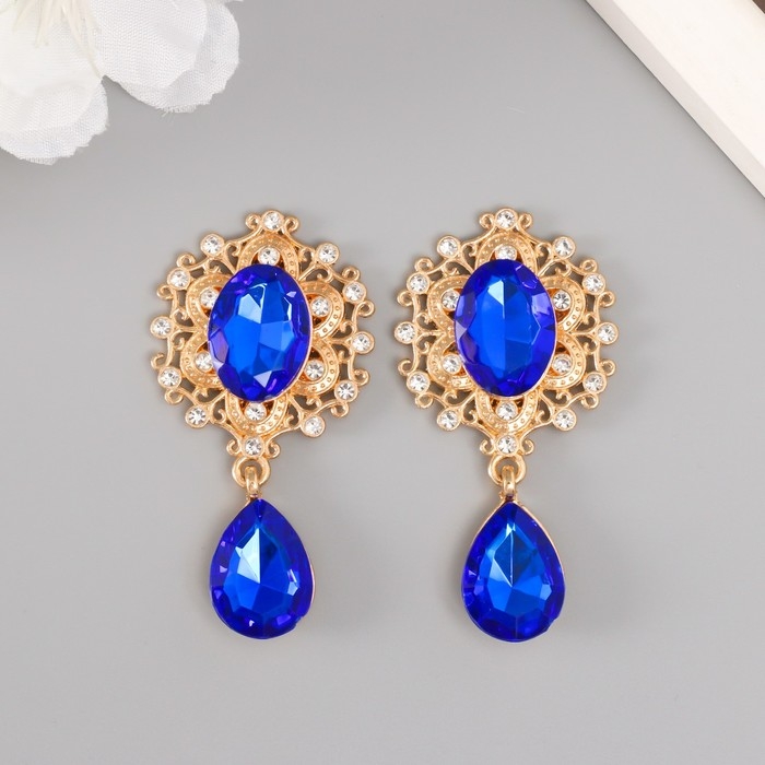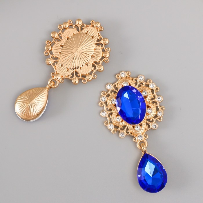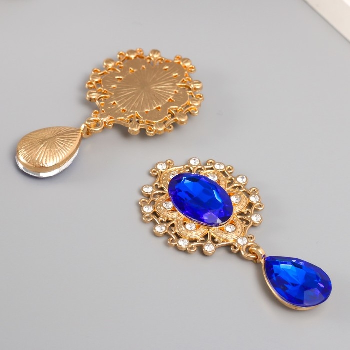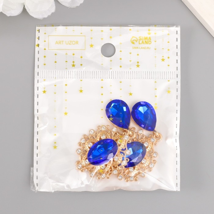 Декор для творчества металл, стразы "Кристалл в цветке с подвеской" 5,5х2,8х0,7 см