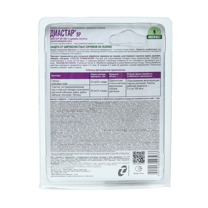 Средство от сорняков на газонах Диастар (от одуванчика), Грин Бэлт, 10 мл
