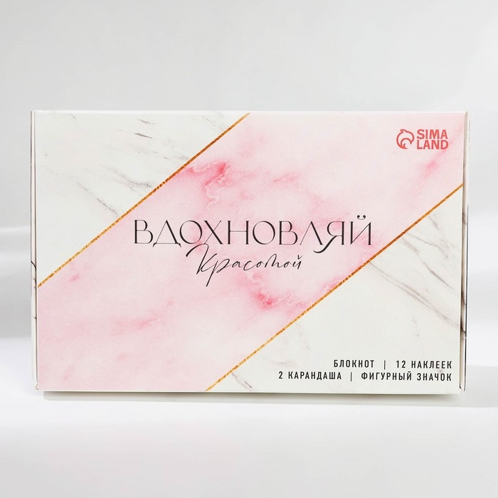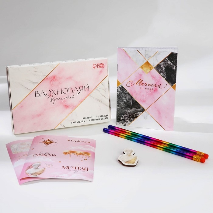 Подарочный набор «Вдохновляй красотой» блокнот А6, значок, наклейки и карандаши 2 шт